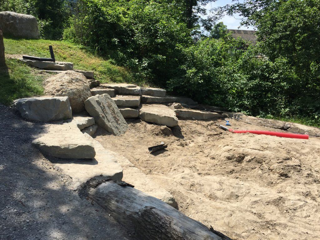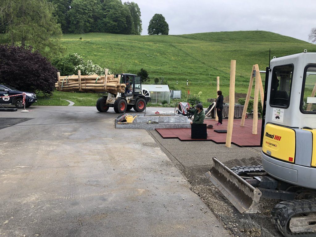 Die Bilder stammen von den verschiedenen Bauprojekten und sollen zeigen, was möglich ist und vielleicht auch wie die Kinder damit spielen. Da oft keine grossen und kleinen Kinder anwesend sind wenn die Fotos entstehen oder ich am arbeiten bin und das fotografieren vergesse, fehlen auf manchen Bildern die Menschen. Das heisst nicht dass die Plätze nicht genutzt werden sondern, dass in dem Moment, als das Bild entstand, niemand da war.